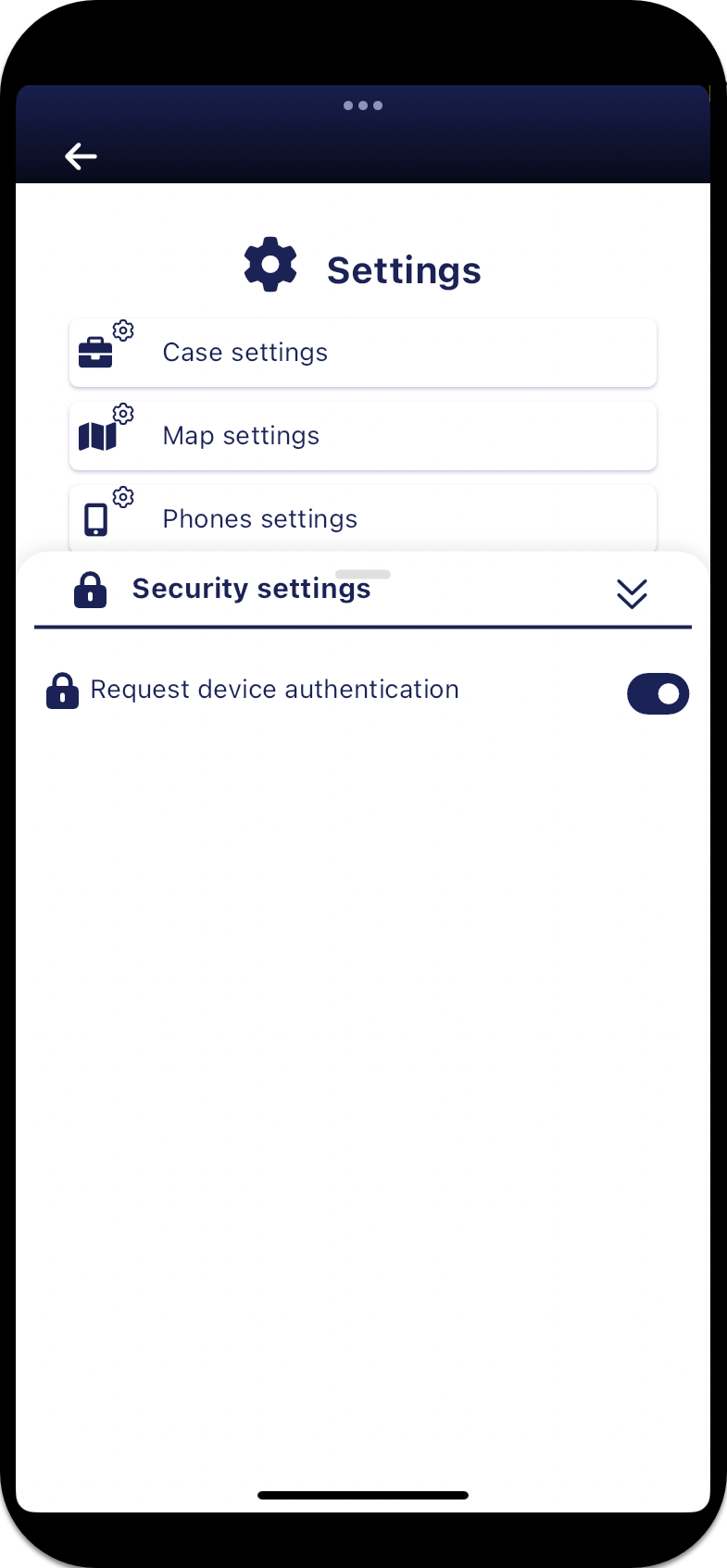 The Security settings panel allows you to enable or disable device authentication. This means that when you log in to the G-Scout App, rather than having to type your password, you can log in using facial or fingerprint recognition.