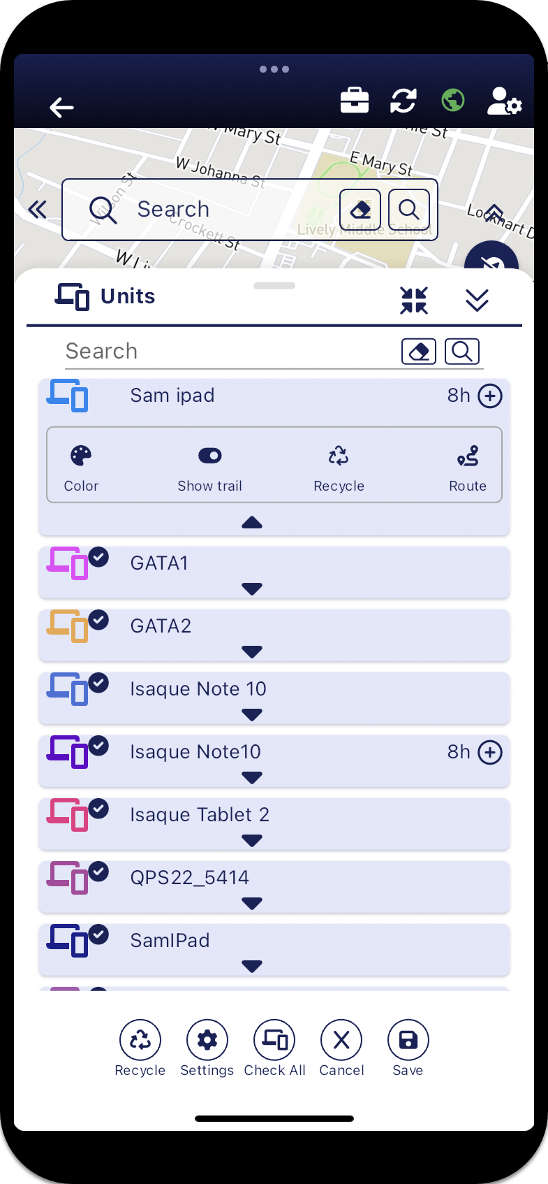 Tap to either select or clear all units last transmitted location from being displayed on the map. Only those units that are selected have their location marker