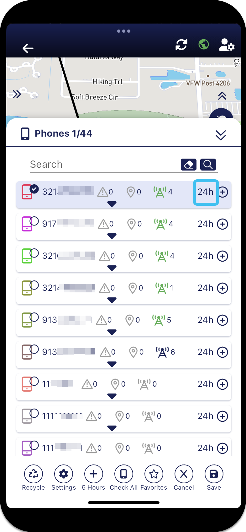 on the Phones panel for either an individual phone or all the selected phones. In the following example this setting is set to 5 hours and when