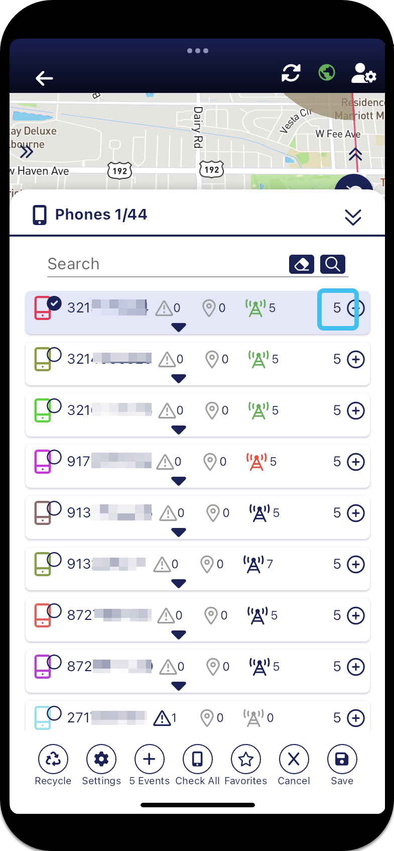 on the Phones panel for either an individual phone or all the selected phones. In the following example this setting is set to 5 locations and when