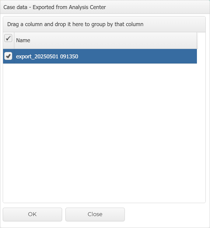 Select the required export then click OK. Note the exports are automatically named using the date and time of the export from the ESPA analysis center.
