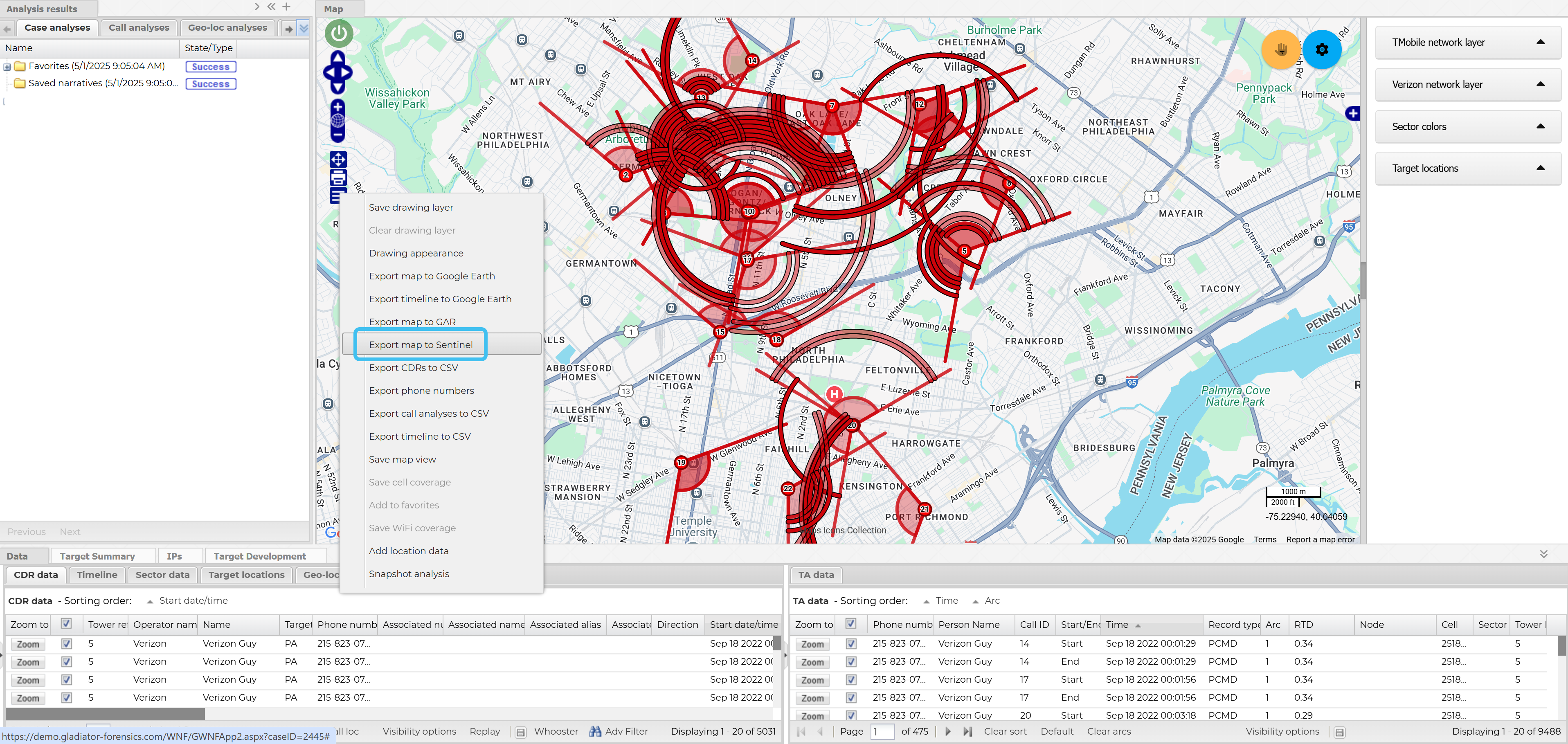 This topic describes how to export timing advance arcs from the ESPA analysis center to the Sentinel screen.