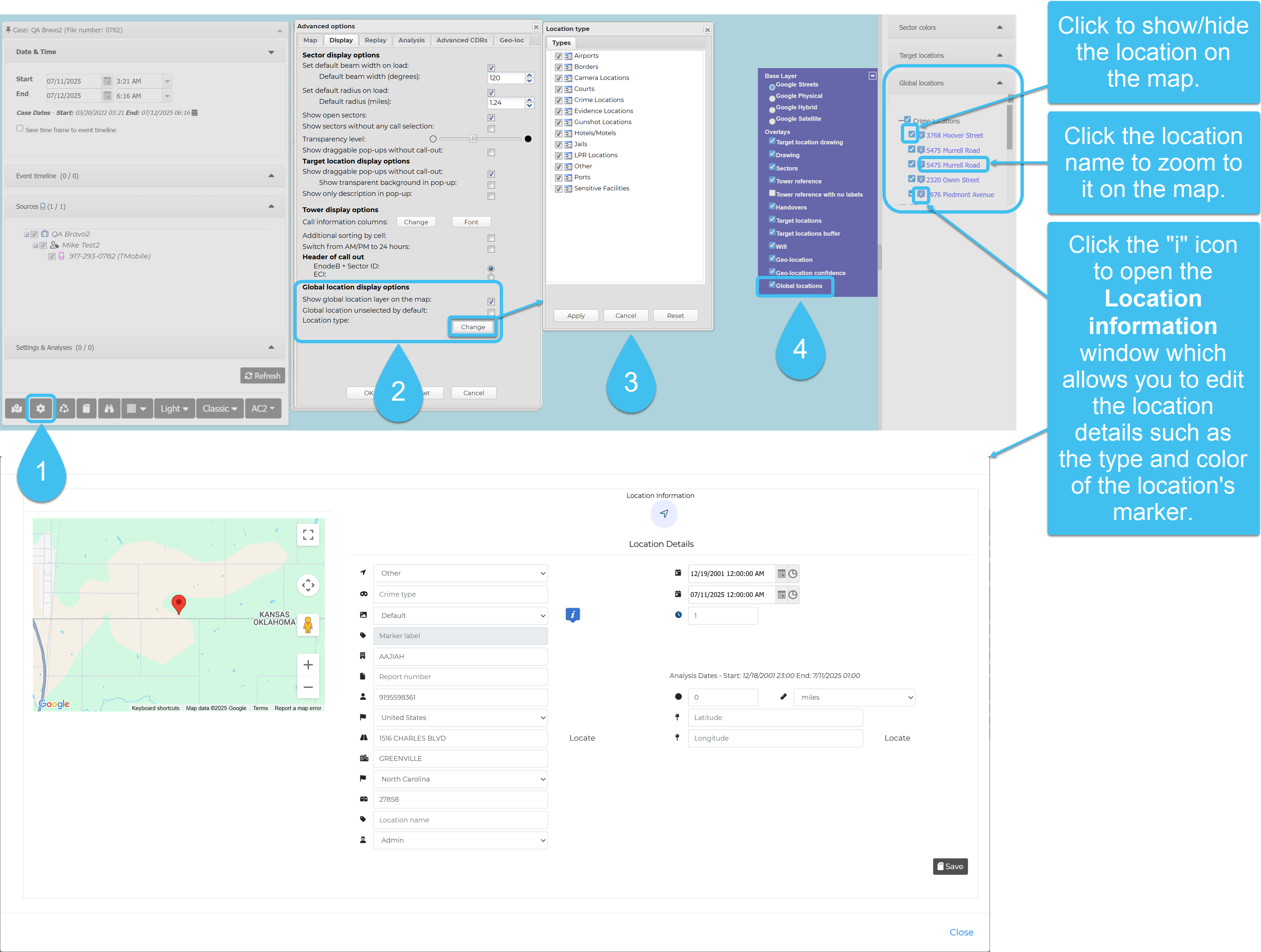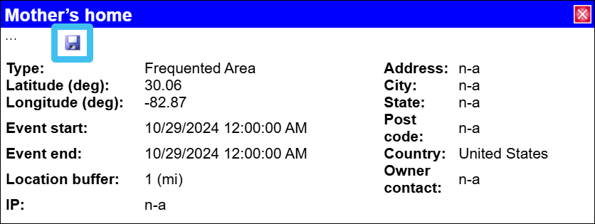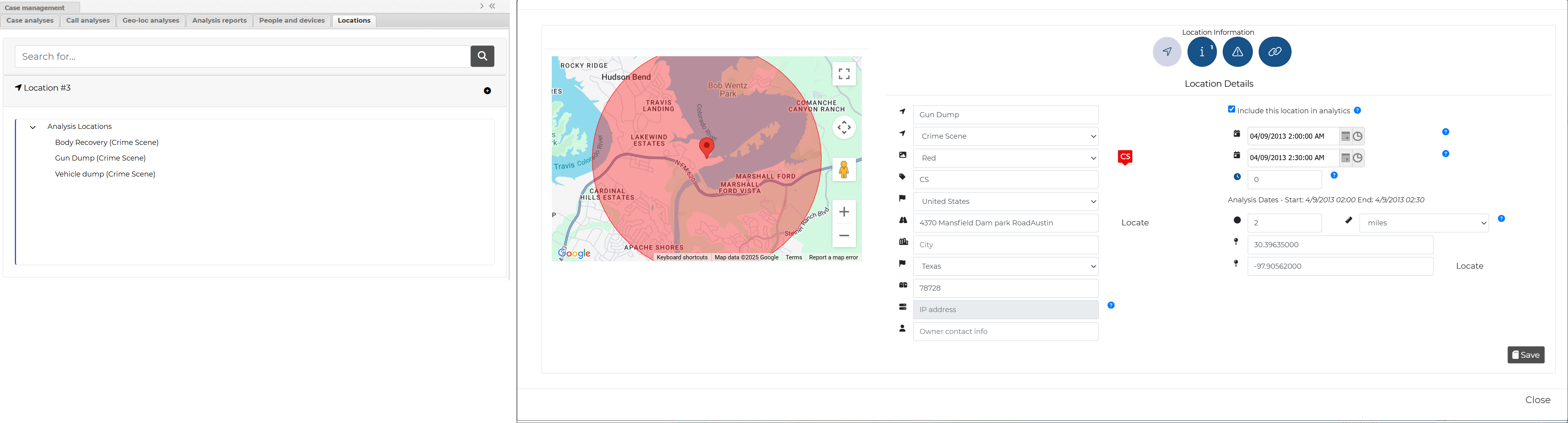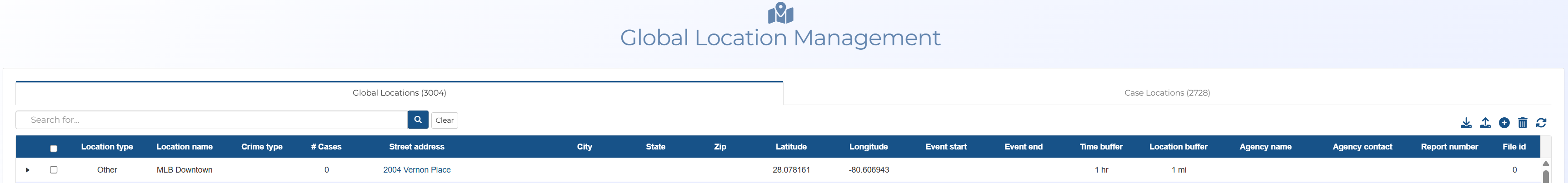 This new tab is coupled with the Locations of interest screen in Case management. It allows you to view and edit the locations in the case, and add new locations, however currently it does not have all the features which are available on the Locations of interest screen, such as the ability to delete a location and upload a location file. You can also open the Location information window, which provides all the same features as on the Locations of interest screen with the exception of managing pictures and target development files.