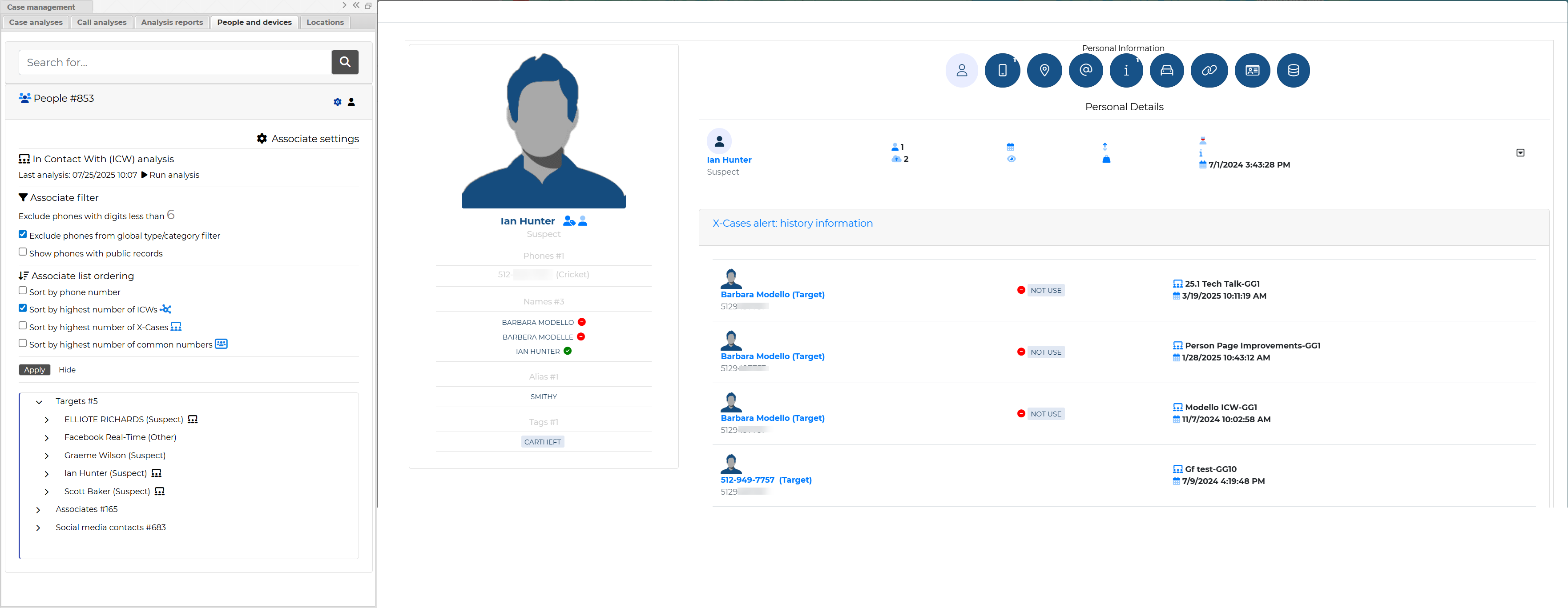 - The People and Devices screen available in Case management has had a number of enhancements. These features also apply to the new People and devices tab and Personal information window that has been added to the ESPA analysis center.