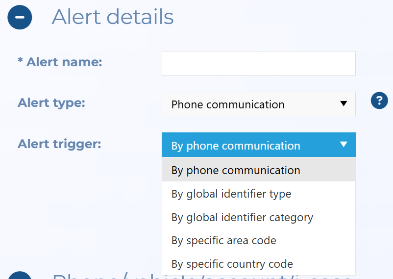 By phone communication: this is the original phone communication alert which is used when you want to monitor when a phone you have an i-case configured for, has communication with any phones that are either entered in the case or are associated with the case.
