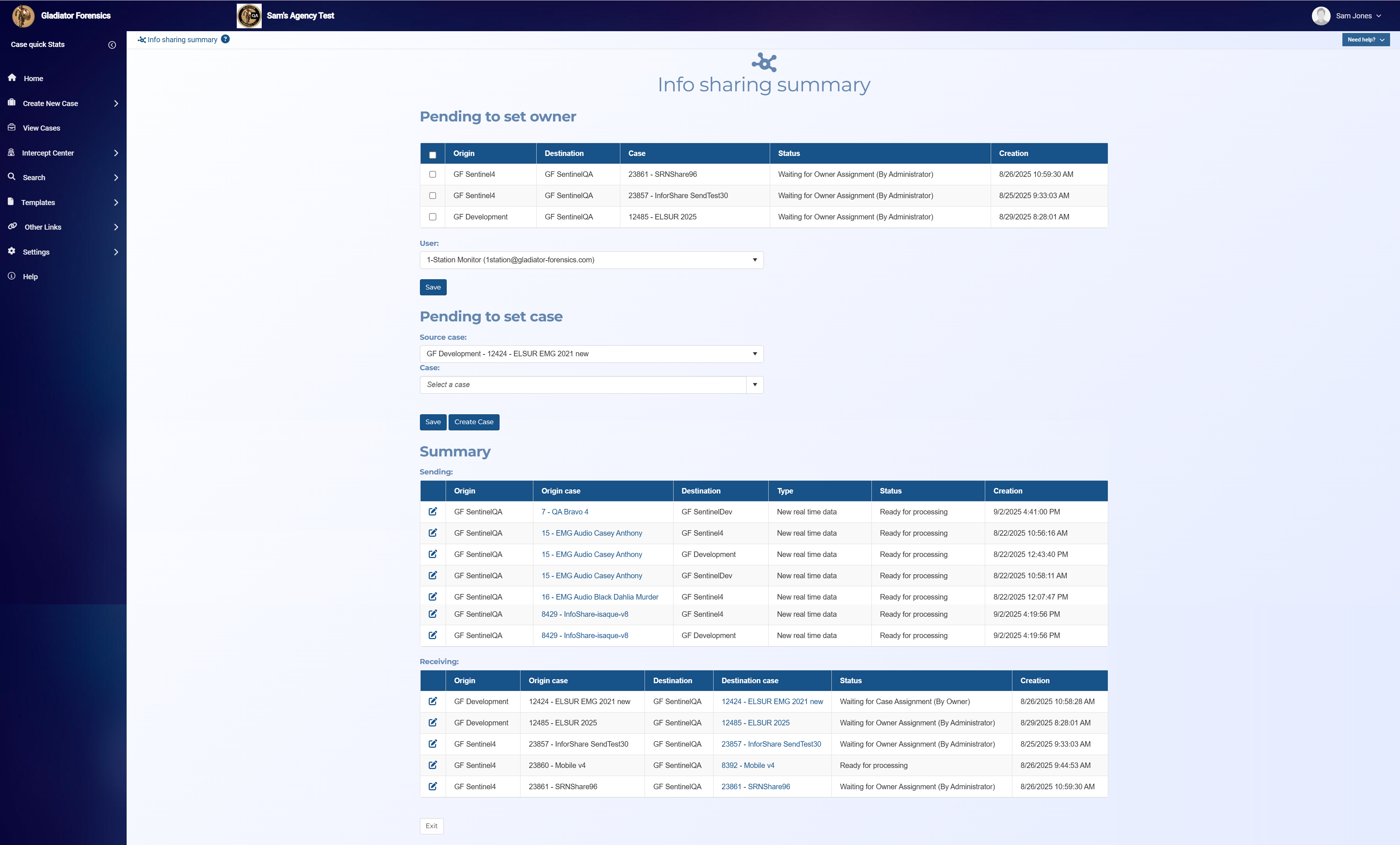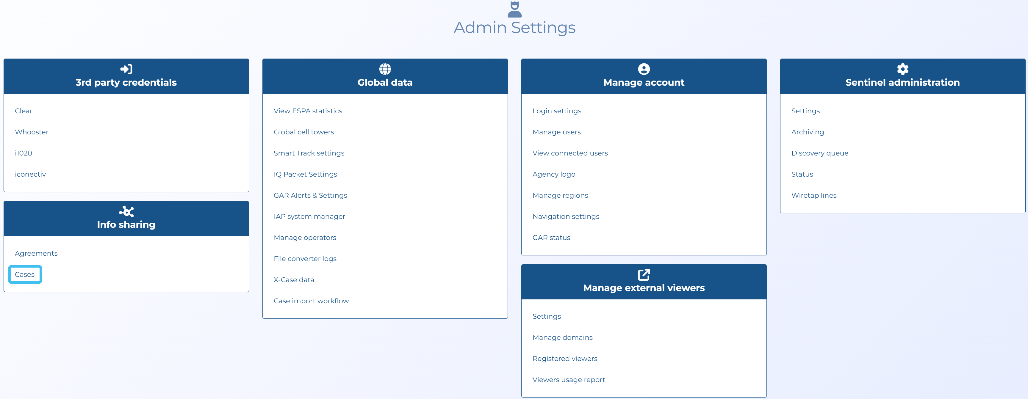 Administrators can manage the data sharing using the new Info sharing summary screen which is opened by clicking Cases on the Admin settings screen.