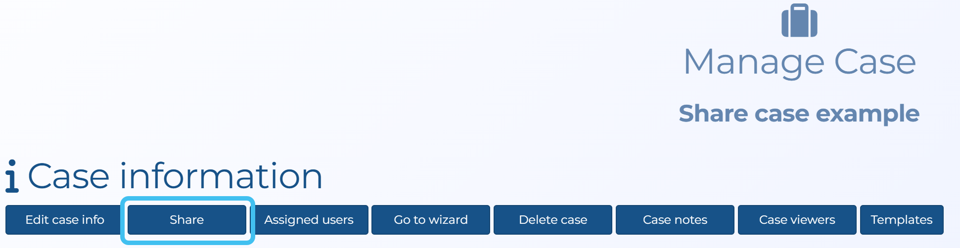 For information refer to Sharing cases and Managing case data sharing.