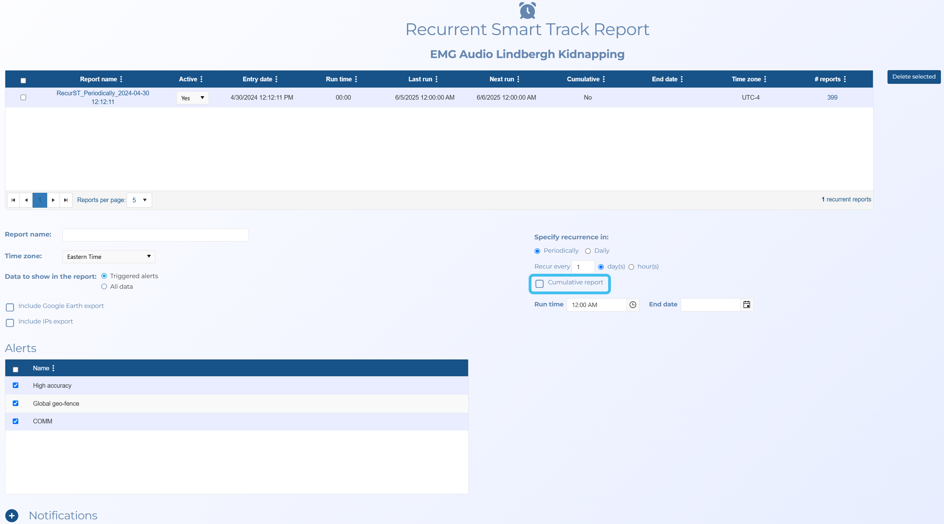 A Cumulative report setting has been added to the Recurrent Smart Track Report screen. Previously these reports contained all the data from when the Smart Track was first created. However this setting allows you to set whether you prefer the incremental data or the cumulative data. This is not selected by default so only incremental data is included in the report which minimizes the amount of processing time; cumulative should only be selected when you specifically require it.