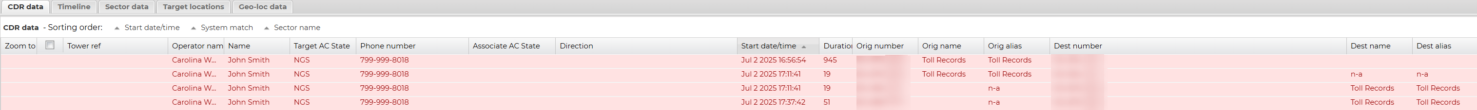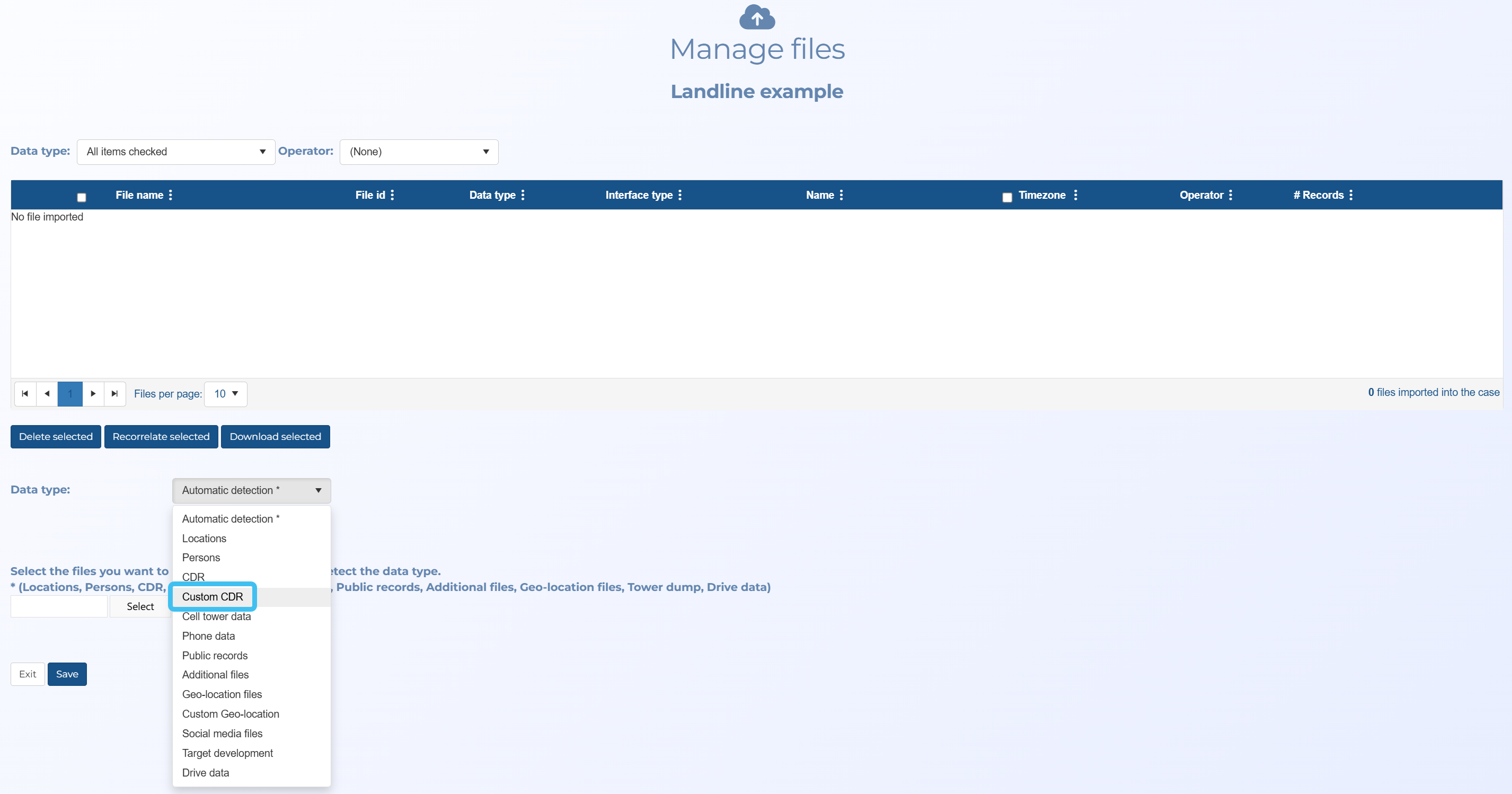 You can now import landline and wireless files which contain no location data using the new Custom CDR option on the Manage files screen. Although these files have no location data they provide you with information on the date/time that people were in contact.