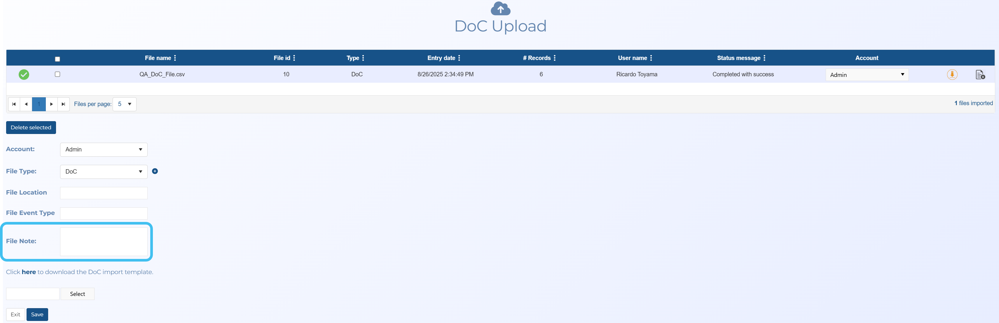 A new File note setting has been added to the DoC Upload screen. If you want the same note for every identifier, rather than enter it for each identifier in the upload file, you can simply add it once to File note and it is replicated for each identifier.