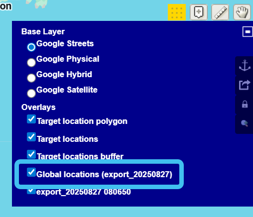 You can also export global locations from the ESPA analysis center to the Sentinel screen as described in the Sentinel enhancements.