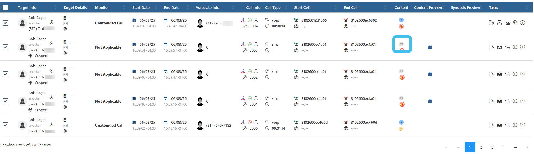 The sms event type classifications have been enhanced to help you distinguish between user text messaging and other content types. These new event types are displayed on the Event type column on the Sentinel screen's Event summary view, and the Call type column on the Evidence Management and Reporting screen. While generally the term sms is synonymous with user text messaging, sms is a protocol that can be used to transmit different types of carrier data to the device, including for example voicemail notifications and status, mms notifications, and other carrier-specific background data.
