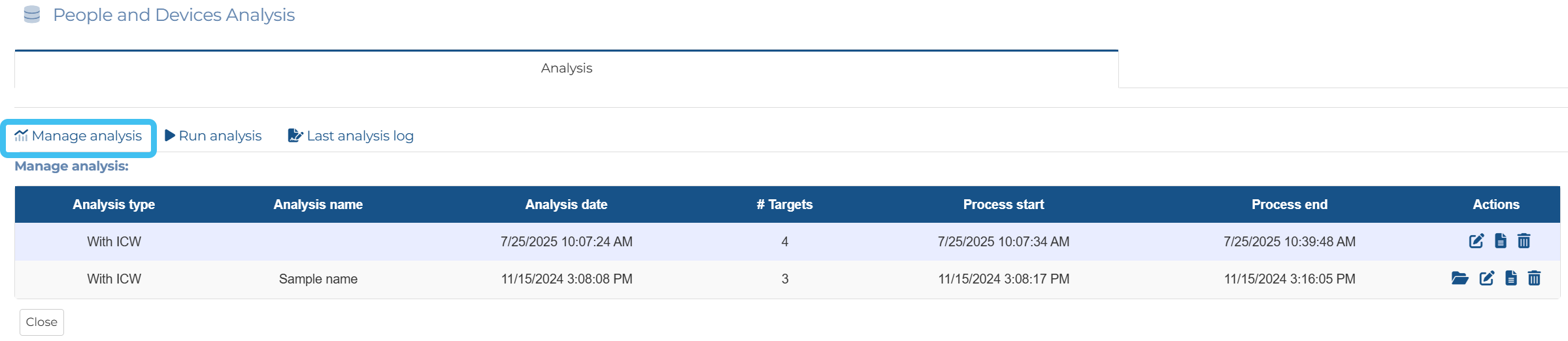 Previously you could only view the last analysis that was run. Now each analysis is saved and can be selected for viewing, and managed using the new Manage analysis.