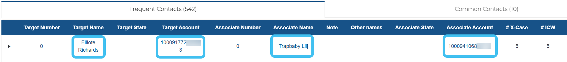 On the Frequent contacts and Common contacts tabs you can now open the person info pop-up from the following columns: Target name, Target account, Associate name and Associate account.