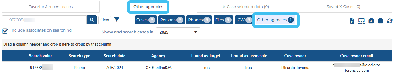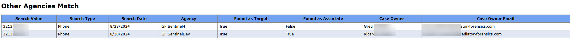 When you perform a search, it now includes results from other agencies such as the SRN Express Portal, and other OSS-ESPA accounts that your administrator has set up Info sharing agreements with. Info sharing agreements allow both the inbound and outbound searches of the data in each others account. These results are available in the: