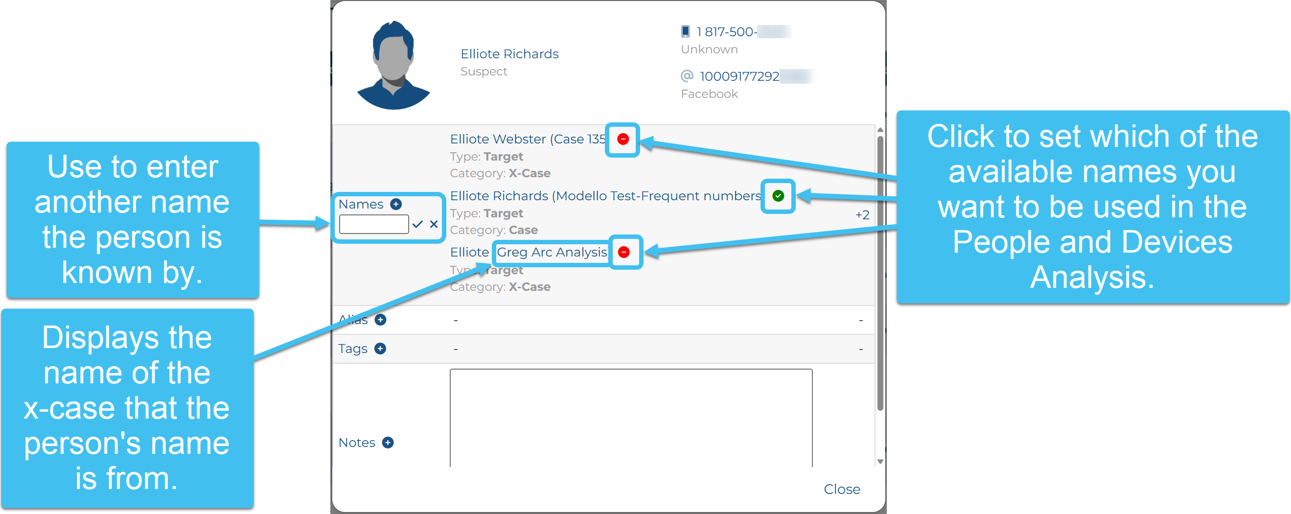 allows you to add additional names for the person.