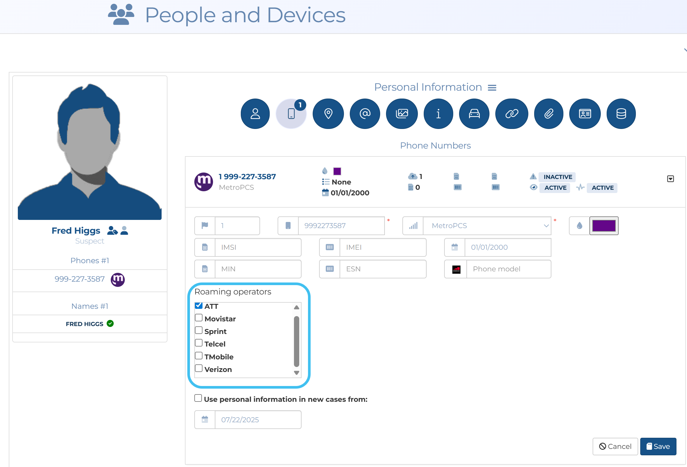 A new Roaming operators setting has been added to the People and devices Phone numbers tab. When an operator is selected:
