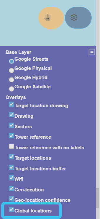 Once the data is loaded, click to open the map layers and ensure Global locations is selected.