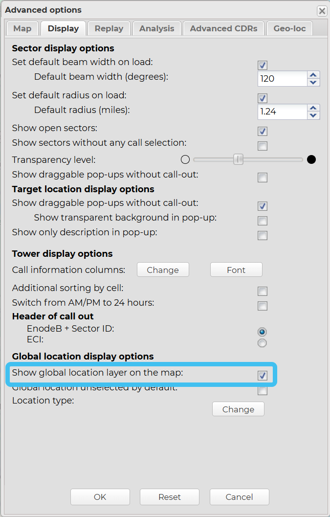In Global location unselected by default choose whether or not you want the global locations to be displayed automatically when you load the data on the map, or if you would prefer them to not display until you select the Global locations map layer.
