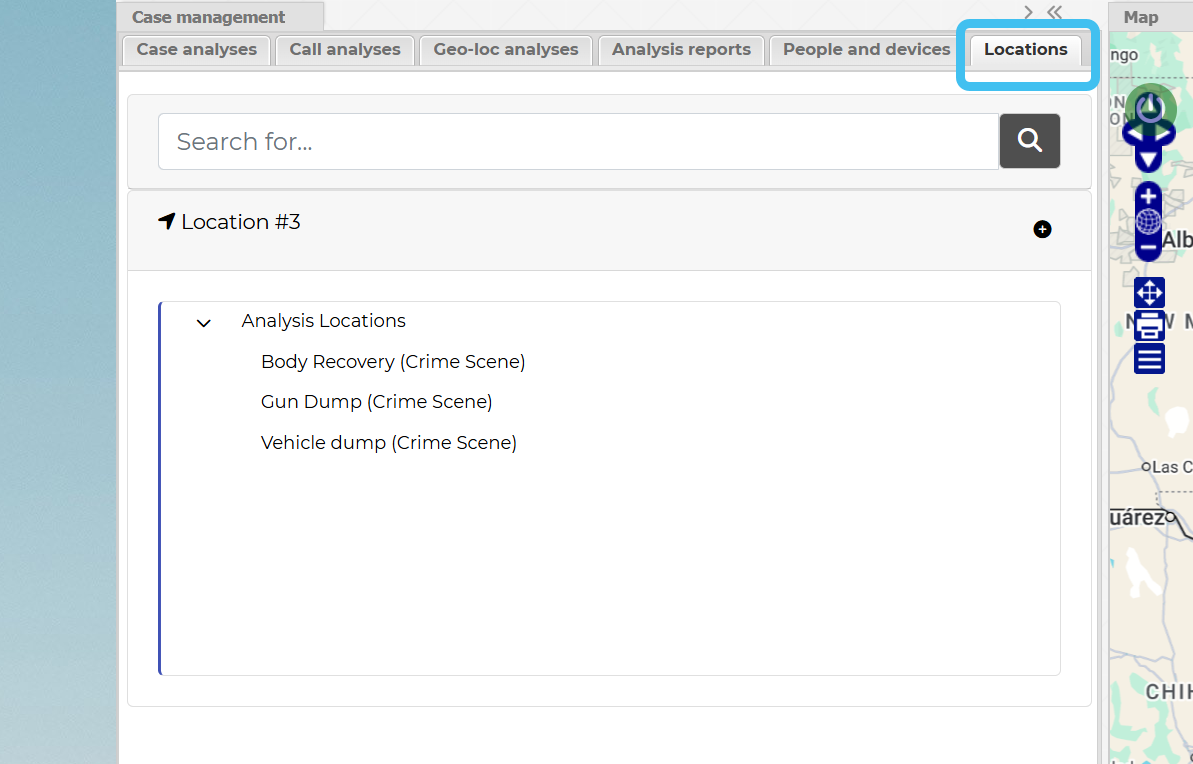 With your case loaded on the ESPA analysis center, on the Case management view, click the Locations tab.