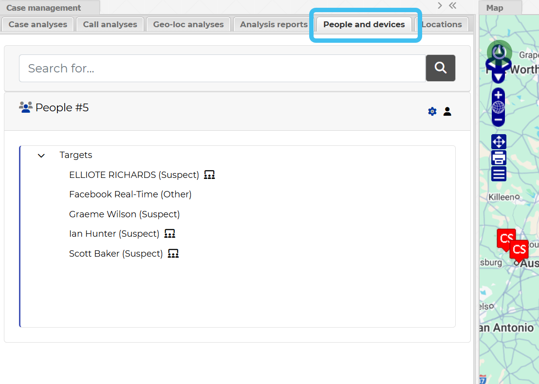 With your case loaded on the ESPA analysis center, on the Case management view, click the People and devices tab.