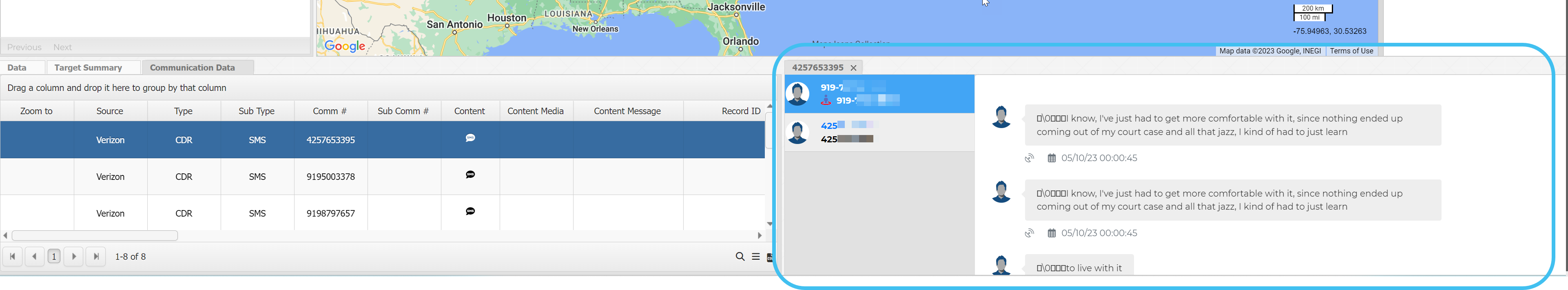 This topic explains how to view Verizon SMS content on the ESPA analysis center screen.