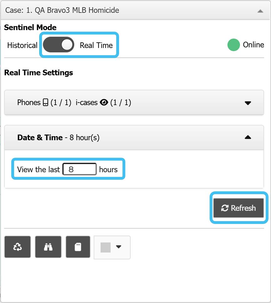 Check that you are receiving data by verifying that there is a live ping file listed in Case Files on the Case management screen.