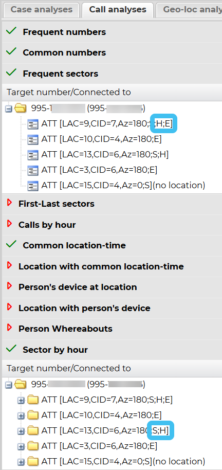 - Last call: this displays the last time a call or SMS was made or received using the sector. This, along with First call allows you to investigate the calling pattern using that specific sector. Refer to the examples in First call on how this data may help your investigation.